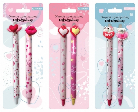 Długopis posiada niebieski wymazywalny wkład. Dostępny w 3 wersjach.