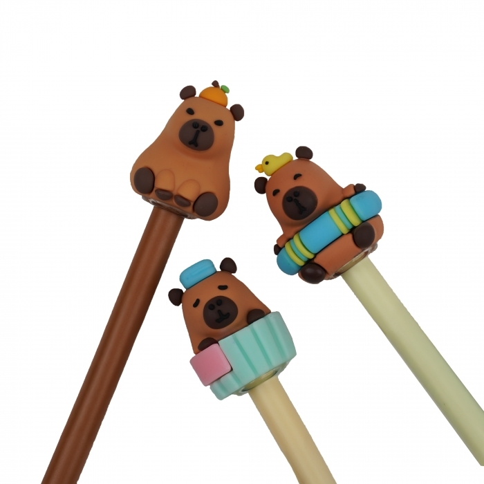 Każdy kocha kapibary! Czy jest coś lepszego, niż mieć jedną z nich zawsze przy sobie? Z tym długopisem z figurką jest to możliwe! Kapibary udowadniają przy okazji, że bez względu na porę roku wakacje nie muszą się kończyć - dlatego pozostają w swoich letnich stylizacjach.