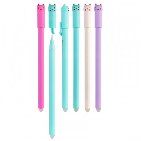 Długopis żelowy wymazywalny niebieski - Kot, 1 szt