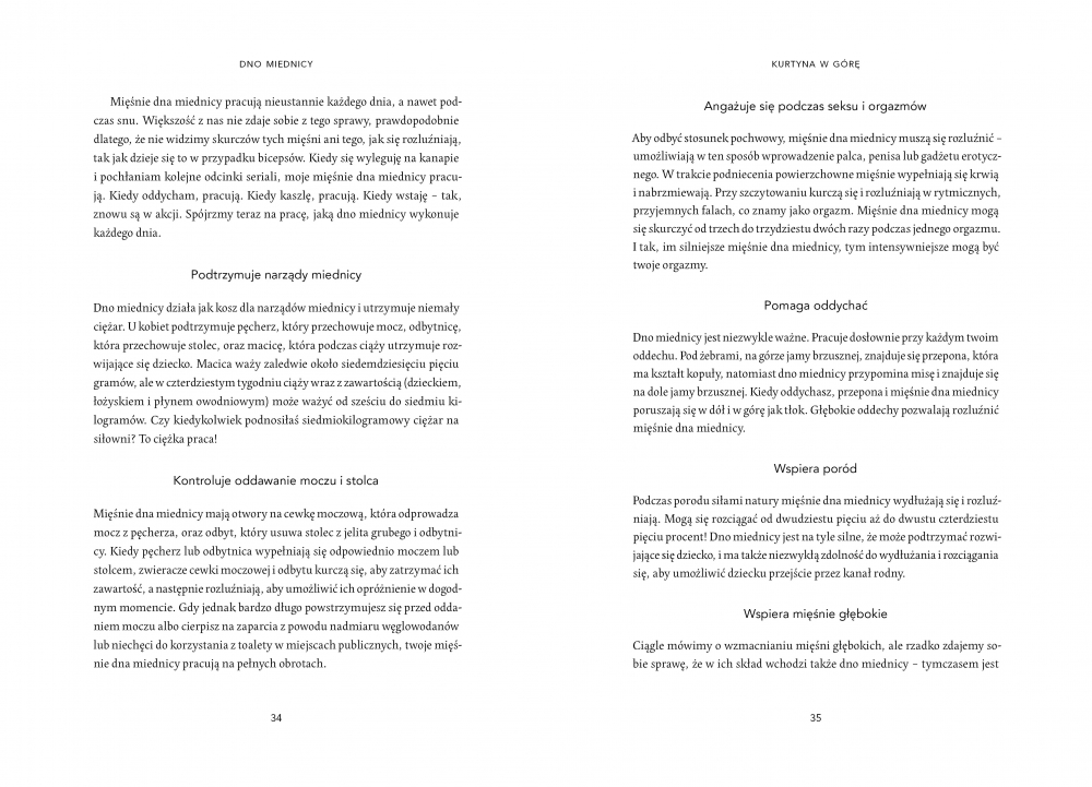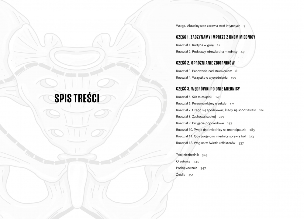 „Edukacyjna, śmieszna i fascynująca! Ta książka to praktyczny i kompletny przewodnik, który pomaga przejąć kontrolę nad zdrowiem dna miednicy”. ― Led. med. Karen Tang, autorka książki Dobrze, że pytasz. Wszystko, co chciałabyś wiedzieć o swoim zdrowiu ginekologicznym (ale nigdy Ci nie powiedziano)