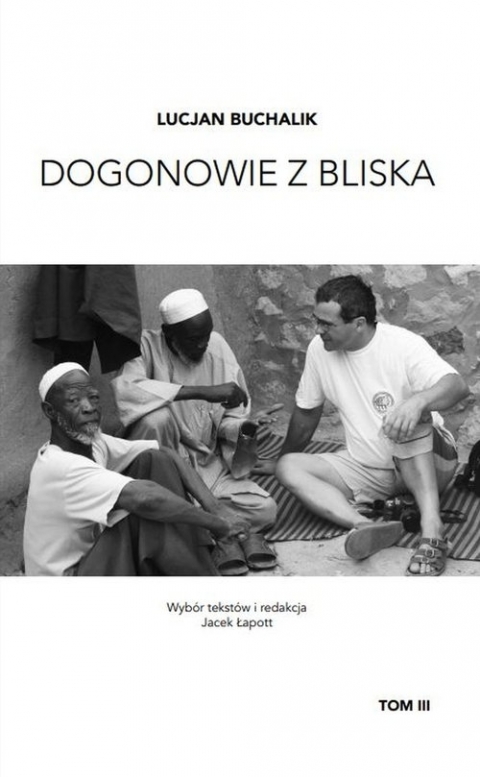 Kolejny, trzeci tom serii poświęconej Dogonom wypełniony jest publikacjami etnologa-afrykanisty – Lucjana Buchalika. To jeden z tych nielicznych badaczy, który nie potrafi pisać o Afryce bez bliskiego, wielokrotnego kontaktu z jej mieszkańcami. Tę pasję przejawiał już jako student, organizując w niełatwych warunkach komunistycznego systemu, w roku 1984, wyprawę do Afryki. Chociaż wyprawa nie zakończyła się spektakularnym sukcesem (prawie wszyscy jej uczestnicy musieli wracać awaryjnie do kraju), Lucjan Buchalik pozostał i z determinacją wyruszył na spotkanie z kulturą Dogonów. Następny wyjazd miał miejsce w 1990 roku, kiedy to dotarł kolejny raz do tego plemienia jako uczestnik Ekspedycji Etnologicznej SAHARA-SAHEL ’90 zorganizowanej przez Muzeum Narodowe w Szczecinie. A potem było już dużo łatwiej – wyjazd za wyjazdem. Zainteresowanie kulturą Dogonów dzielił z badaniami wśród ich sąsiadów – Kurumbami z Burkina Faso. Te niecodzienne, dualne badania zaowocowały oddzielną publikacją, która była jednocześnie jego dysertacją doktorską. Wyjazdy w te oba rejony (Mali, Burkina Faso) stały się może nie codziennością, ale „corocznością”. Żmudne obliczenia wykazały, że był w Afryce aż 40 razy, w tym 18 razy w kraju Dogonów. To swoisty rekord wśród polskich afrykanistów. Prócz działalności naukowo-badawczej pomagał także na miejscu różnym organizacjom pozarządowym w ich niełatwej pracy. Jednocześnie, jako Dyrektor Muzeum Miejskiego w Żorach, gromadził w trakcie swoich wyjazdów niemałe kolekcje eksponatów dla tej instytucji. Publikował nie tylko artykuły, ale i książki: Kolorowy sahel, Niewolnicy kobiet czy Dogon ya gali, a wymieniam tylko te obszerniejsze. Jako muzealnik publikował albumy poświęcone różnym materialnym artefaktom – nie tylko Dogonów i Kurumbów, ale również unikalnym kolekcjom będącym efektem zainteresowań Muzeum Miejskiego w Żorach, a zarazem dokumentującym dokonania Polaków w poznawaniu i opisywaniu kultur pozaeuropejskich świata. Ze wstępu