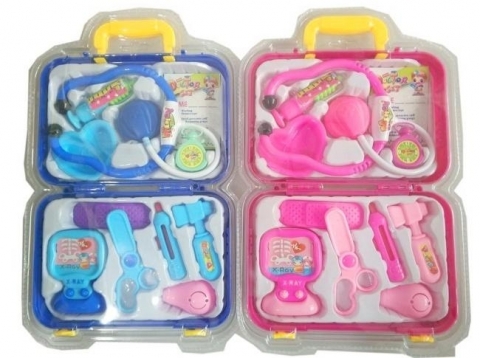 Zestaw małego doktora w walizce to doskonała propozycja dla każdego przedszkolaka, który uwielbia naśladować dorosłych i bawić się w zawody. Produkt dostępny jest w dwóch wersjach kolorystycznych: niebieskiej i różowej (cena dotyczy jednej walizki). Każdy komplet zawiera bogaty wybór akcesoriów niezbędnych do badania pacjentów, w tym kolorowy stetoskop, strzykawkę, termometr, nożyczki, młotek neurologiczny, plaster, a także zabawkowy aparat rentgenowski z wyświetlaczem. Wszystkie elementy są wykonane z bezpiecznego dla dzieci tworzywa sztucznego. Poręczna, przezroczysta walizka z uchwytem pozwala na łatwe przechowywanie i transport wszystkich przyborów. Zabawa tym zestawem nie tylko zapewnia rozrywkę, ale również pomaga oswoić się z wizytami u lekarza, rozwija zdolności manualne, kreatywność oraz uczy troski o innych. Idealny zestaw do długich godzin kreatywnej zabawy.