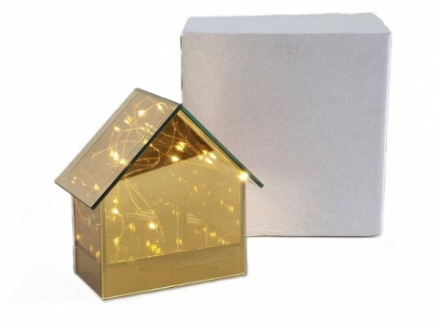 Domek szklany ze światełkami led; 2xaa niedołączone; 14x14x9cm box . .