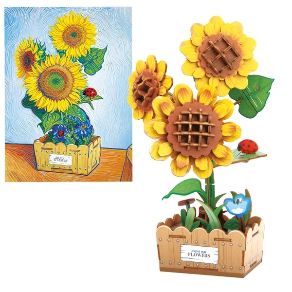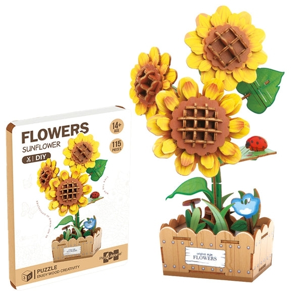 Drewniane kwiatki 3D - Słoneczniki, 116el.