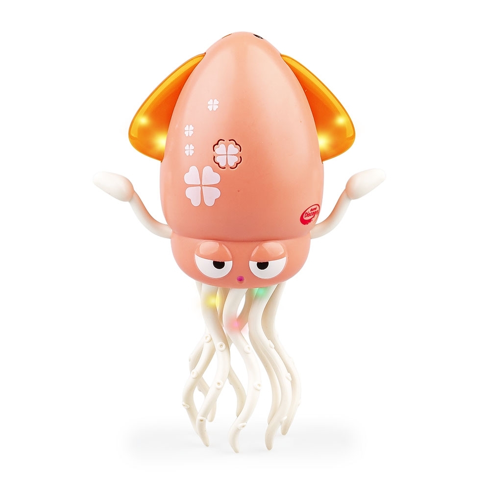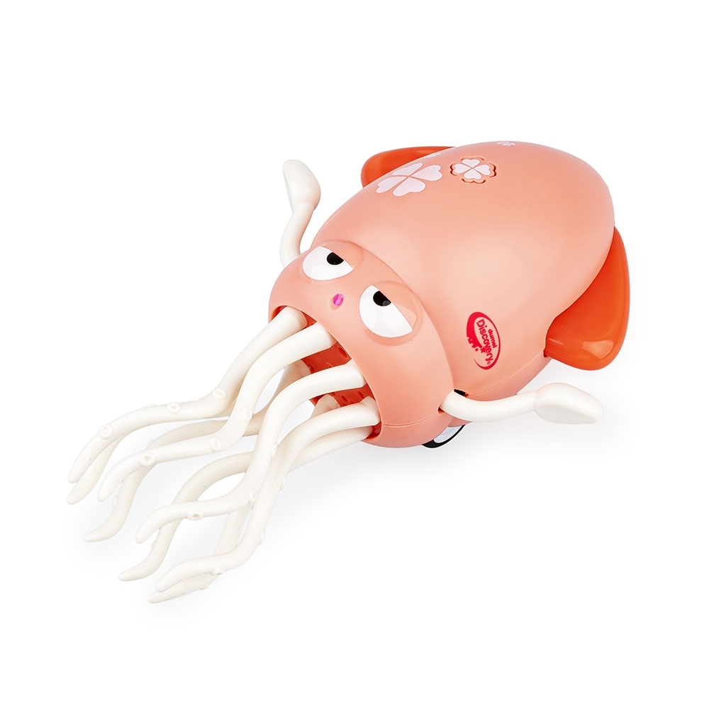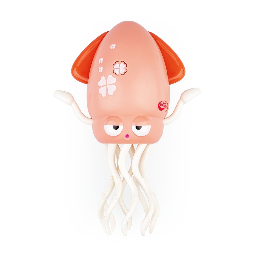 Na stojąco czy leżąco? Baw się tak jak lubisz, tańcząc razem z tym zabawnych głowonogiem! Gdy ustawisz kałamarnicę na jej ruchliwych odnóżach, będzie tańczyć w miejscu. Kiedy natomiast położysz ją na płasko, zacznie poruszać się do przodu i do tyłu, a czujnik, znajdujący się na czubku jej głowy, pozwoli jej omijać przeszkody. Zabawka działa w dwóch trybach – dźwiękowym, tańcząc przy dźwiękach piosenki oraz melodii, a także cichym, poruszając się bez muzyki. Za ustawienie wybranego trybu odpowiada przełącznik, znajdujący się z tyłu kałamarnicy. Umożliwia on także całkowite wyłączenie zabawki.