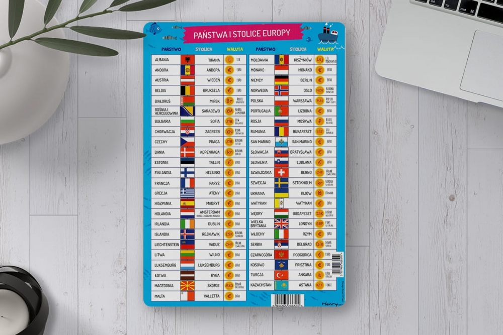 Dwustronna plansza edukacyjna w formacie A4, dwustronnie zafoliowana.