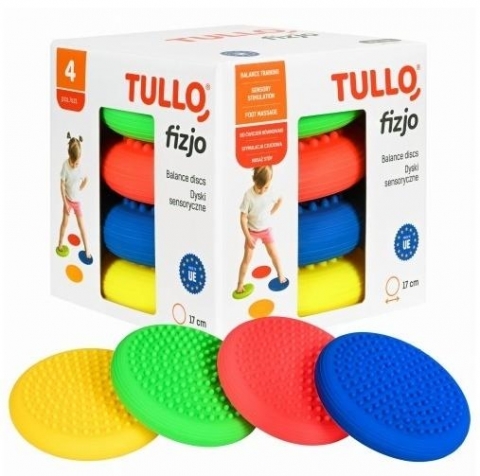 Dyski sensoryczne z kolcami TULLO to wyrób medyczny wspierający terapię integracji sensorycznej (SI), trening równowagi, koordynacji oraz profilaktykę i rehabilitację stóp.