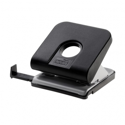 Klasyczny dziurkacz biurowy Novus Master. Wysuwany ogranicznik formatu z czytelnym wskaźnikiem rozmiaru. Antypoślizgowa podstawa, którą można do połowy wysunąć dla opróżnienia i łatwo zamknąć. Wykonany z metalu w obudowie z tworzywa sztucznego. Kolor czarny.