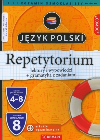 Repetytorium z języka polskiego służy przygotowaniu ósmoklasisty do obowiązkowego egzaminu na zakończenie szkoły podstawowej . Część powtórzeniową podzielono na zagadnienia gramatyczne (Gramatyka 28 tematów) i pozostałą nazwaną Lektury, choć obejmującą znacznie szerszy zakres tematyczny: omówienie lektur obowiązkowych począwszy od klasy IV do VIII , informacje o twórcach, formy wypowiedzi (67 tematów). Na rynku brakuje omówień obowiązkowych lektur w klasach młodszych, a one też są potrzebne do testów egzaminacyjnych. Na końcu znajdują się arkusze egzaminacyjne z ostatnich lat 2024 i 2025 - czyste do wypełnienia przez ucznia oraz uzupełnione. Te z odpowiedziami zawierają: punktację, komentarze i informacje, jak nie stracić punktów, a przy wypracowaniach ocenionych na maksymalną notę (zawsze są teksty do obydwu tematów), jest bardzo szczegółowe oznaczenie ich konstrukcji, argumentacji, użytych przykładów pochodzących z lektur i innych elementów przydatnych zdającemu egzamin uczniowi.