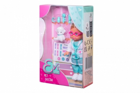 EL Evi WeterynarznEvi jako doktor opiekuje się swoimi pluszowymi zwierzętami, zestaw zawiera akcesoria lekarskie i arkusz naklejek, 12 cm, 3l+