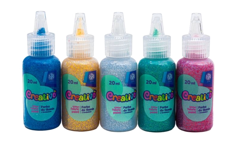 - Dodaj swoim tekstylnym projektom wyjątkowego blasku dzięki farbom do tkanin z brokatem.