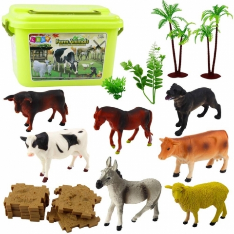 ZESTAW FIGURKI FARMA + KUFEREK 57 EL. Zestaw Figurki Farma to idealna propozycja dla najmłodszych miłośników świata przyrody. Ten bogato wyposażony zestaw składa się z realistycznie odwzorowanych figurek zwierząt, różnorodnych elementów otoczenia, takich jak drzewa, rośliny, puzzle pełniące funkcję podłoża oraz ogrodzenie do zagrody, a wszystko to zapakowane jest w praktyczny kuferek z poręczną rączką, który ułatwia zarówno przechowywanie, jak i transport. Dzięki bogactwu detali i wysokiej jakości wykonania, zabawka zapewnia dzieciom wielogodzinną, kreatywną i rozwijającą zabawę. Zestaw doskonale sprawdza się jako narzędzie edukacyjne - poprzez zabawę dzieci mogą poznawać i rozróżniać gatunki zwierząt, uczyć się ich nazw, a także ćwiczyć logiczne myślenie i planowanie przestrzenne, budując własne miniaturowe farmy. Figurki i elementy otoczenia sprzyjają rozwojowi wyobraźni, kreatywności oraz zdolności manualnych, a zabawa nimi może odbywać się zarówno samodzielnie, jak i w grupie z rówieśnikami, co wspiera również rozwój umiejętności społecznych. Kompaktowy kuferek z uchwytem pozwala na utrzymanie porządku, a jego solidna konstrukcja sprawia, że zestaw można łatwo zabrać na wakacje, do przedszkola czy w odwiedziny do dziadków. To świetny pomysł na prezent, który zachwyci każdego małego pasjonata zwierząt i natury, łącząc zabawę z nauką w najlepszym wydaniu. SPECYFIKACJA: Wymiary kuferka: 28 x 20 x 18 cm Liczba elementów: 57 Materiał: tworzywo sztuczne ZAWARTOŚĆ ZESTAWU: Figurki zwierząt - 12 szt. Figurki drzew - 2 szt. Puzzle - 16 szt. (imitacja ziemi do zagrody) Płotek - 12 elementów Figurki roślin - 14 szt. Kuferek z rączką