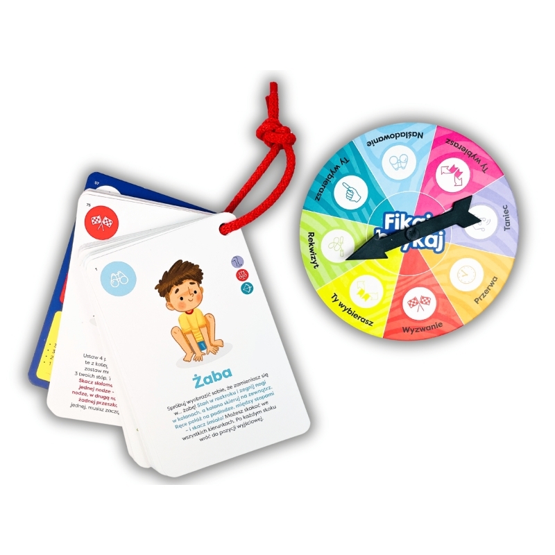Fikaj, brykaj! to pełna energii i śmiechu gra ruchowa dla dzieci od 4 lat, która rozrusza całą rodzinę! Skacz jak żabka, fruń jak jaskółka, zatańcz twista i przekonaj się, jak dużo radości daje wspólna aktywność. Każde losowanie to nowe zadanie i nowa dawka ruchu. Ta wyjątkowa zachęca do aktywności fizycznej w domu i przedszkolu, rozwija koordynację ruchową, równowagę, gibkość i poczucie rytmu, a przy okazji – wzmacnia więzi i uczy współpracy.