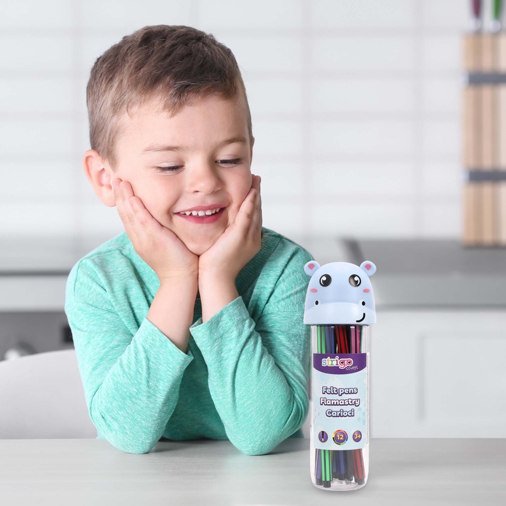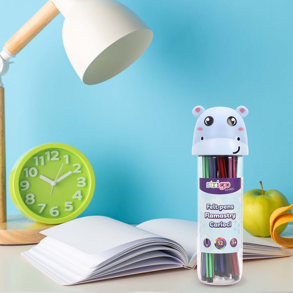 Flamastry Strigo Hipopotam w 12 głębokich kolorach.