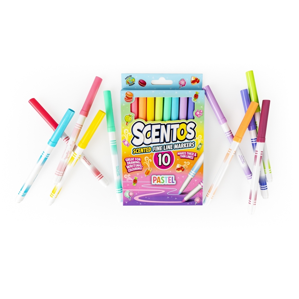 Zestaw, z którym pisanie i rysowanie stanie się pachnącą przygodą! Tworzy go dziesięć flamastrów w pięknych, pastelowych kolorach, które słodko pachną. Każdemu mazaczkowi odpowiada inny zapach, nawiązujący do deserów lub słodyczy w tym samym kolorze.