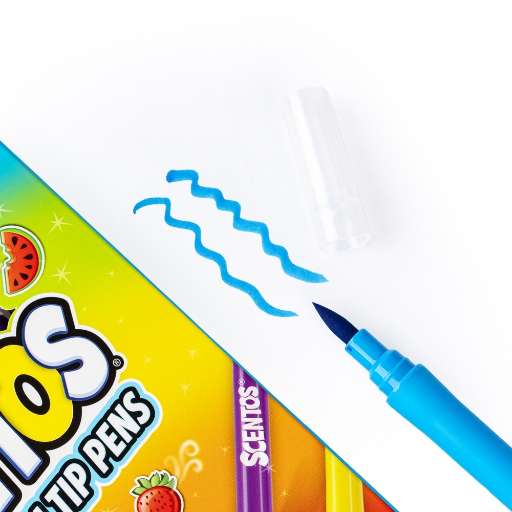 Poczuj się jak artysta, malując flamastrami tak, jak prawdziwymi pędzelkami! W zestawie znajdziesz dziesięć zapachowych flamastrów w różnych kolorach. Każdemu kolorowi przypisany jest inny zapach, nawiązujący do owocu lub słodyczy w tym właśnie kolorze.