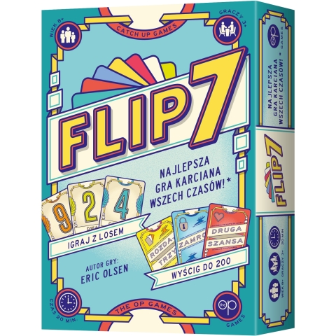 Flip 7 to niezwykle prosta gra karciana oparta na kuszeniu losu. W każdej turze decydujemy, czy podejmujemy ryzyko, próbując powiększyć nasz dorobek punktowy, czy też wolimy spasować i zachować to, co już udało nam się zebrać. Zwycięzcę wyłonimy, gdy ktoś przekroczy 200 punktów, więc czeka nas emocjonujący wyścig pełen niespodziewanych zwrotów akcji!