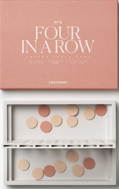 Klasyczna gra Four in a Row (Cztery w rzędzie) wydana przez PRINTWORKS w pięknej kolorystyce i minimalistycznej estetyce. Przywołaj dziecięce wspomnienia i ciesz się grą.