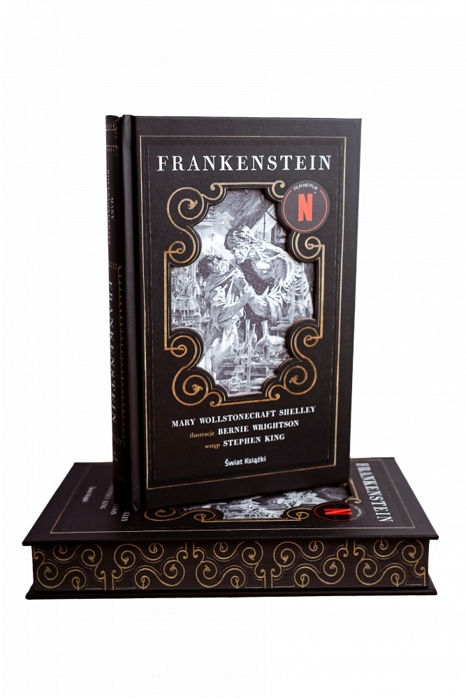 Dopracowane wydanie Frankensteina z barwieniami boków bloku, wycięciem we froncie okładki oraz klasycznymi ilustracjami Berniego Wrightsona, którymi inspirował się Guillermo del Toro, tworząc nową ekranizację tej kultowej powieści, a także ze wstępem Stephena Kinga, esejem Margaret Brantley i notą autorki.