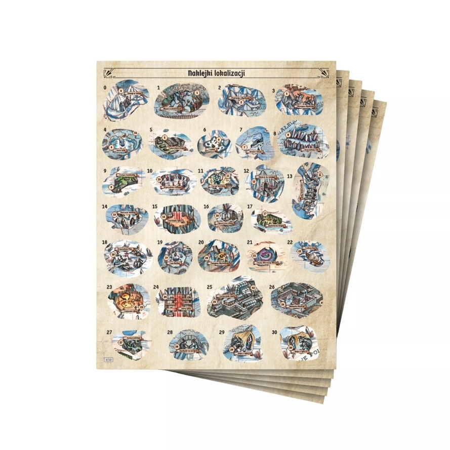 Usuwalne winylowe naklejki lokalizacji, budynków, kampanii, ulepszeń oraz pieczęci.
