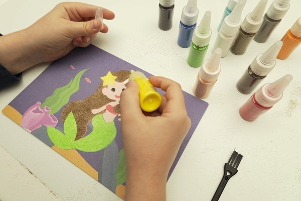 Zabawa w wypełnianie obrazków piaskiem to nie tylko radość i relaks, ale także sposób na rozwój – ćwiczy sprawność manualną, cierpliwość, koncentrację oraz wyobraźnię przestrzenną. Każdy obrazek to mała artystyczna przygoda, której efekt końcowy daje poczucie satysfakcji i może stać się piękną dekoracją pokoju lub oryginalnym prezentem dla bliskich.