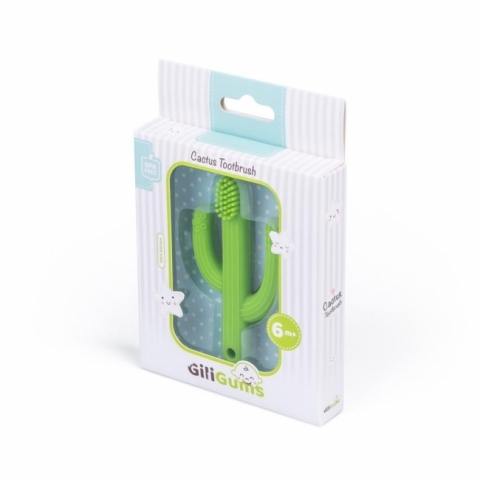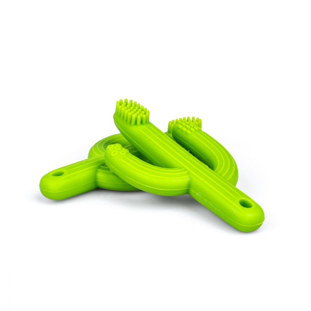 Silikonowy kaktus czyści pierwsze ząbki i masuje dziąsła maluszka. Kształt szczoteczki dostosowany jest do rączki dziecka, a jej faktura zapobiega wyślizgiwaniu się. Soczysty zielony kolor i oryginalny kształt z pewnością przypadną do gustu ząbkującym maluchom.