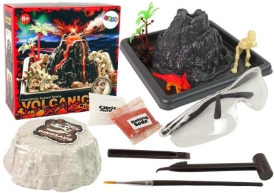 Zestaw 3w1 DIY Wulkan Wykopaliska Gipsowy Erupcja Kreatywny zestaw do przygotowania widowiskowej i znakomitej erupcji wulkanu we własnym domu lub odkryć szkielet dinozaura. Idealny dla fanów nadzwyczajnych zjawisk natury, trzęsień ziemi czy wybuchów lawy. Dostarczy ekscytującej zabawy jednocześnie ucząc i rozwijając ciekawość dziecka. Całą zabawę rozpoczynamy od założenia gogli ochronnych dołączonych do zestawu. Aby wywołać wybuch odmierzamy łyżeczką odpowiednią ilość składników, które wsypujemy do naszego wulkanu. Przy pomocy mieszadła wszystko dokładnie ze sobą łączymy. Do kubeczka nalewamy wodę , którą dodajemy do proszku przy użyciu strzykawki co spowoduje spektakularną erupcję. Duży gips kryje w sobie szkielet, wystarczy namoczyć wodą, następnie za pomocą narzędzi odkryć jaki szkielet znajduje się wewnątrz wulkanu. Zestaw do samodzielnego wykonania wulkanu dostarczy dzieciom i młodzieży mnóstwo emocji, frajdy i wiedzy. Zestaw wykonany jest z najwyższej jakości materiałów. Plastikowa podstawa wulkanu pozwala na wielokrotne powtarzanie eksperymentu, a odpowiednio zabezpieczone pojemniczki z proszkiem i gogle ochronne zapewniają odpowiednie bezpieczeństwo. Elementy zestawu: - forma wulkanu - okulary plastikowe - dłuto - młotek - pędzelek - dinozaury figurki (2 szt) i szkielet - czerwony proszek - białe granulki - instrukcja obsługi Wymiary wulkanu: 18 cm x 18 cm x 10 cm Wymiary pudełka: 19 cm x 18 cm x 9 cm Zestaw przeznaczony jest dla dzieci powyżej 6. roku życia. Zestaw posiada certyfikat CE i jest zgodny z normą EN 71. Zapakowany jest w kartonik z naukową grafiką, dzięki czemu nadaje się idealnie na prezent.