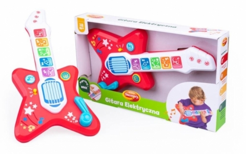 Daj się porwać magii dźwięku i graj na gitarze jak prawdziwa gwiazda rocka! Zabawka do złudzenia przypomina pełnowymiarowy instrument muzyczny. Znajdziemy tu gryf z dotykowymi przyciskami oraz wajchę, która podkręca dźwięk, przenosząc grę na zupełnie inny wymiar! Do wybory mamy 2 tryby zabawy oraz regulację głośności, dzięki czemu dostosujemy zabawkę do indywidualnych potrzeb małego gitarzysty. Grze na instrumencie towarzyszą migające światełka.