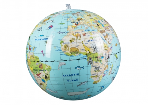 Piłka globus jest do nadmuchania, opakowanie nie zawiera pompki.