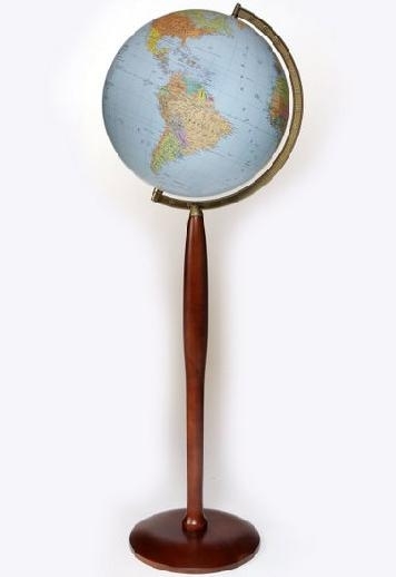Globus 420 polityczno-fizyczny podświetlany, drewniana wysoka stopka, cięciwa aluminiowa.