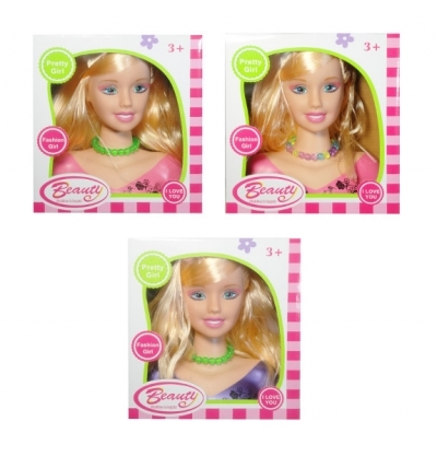 Głowa do czesania. Dostępna w różnych wariantach, kolor wybierany losowo. Cena dotyczy jednej sztuki. Zabawka przeznaczona dla dzieci od lat 3. Produkt zapakowany w kartonowe pudełko. Podane wymiary są wymiarami opakowania.