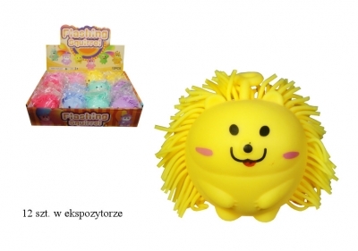 Gumowy świecący jeżyk Po zderzeniu z podłożem świeci, a po ściśnięciu zmienia swój kształt. Produkt występuje w kilku wersjach kolorystycznych, wybierany losowo. Cena dotyczy jednej sztuki. Podane wymiary są przykładowymi wymiarami jeżyka. Zabawka działa na baterie typu AG3/LR41. Baterie znajdują się w zabawce. Produkt zapakowany w przezroczysty worek.