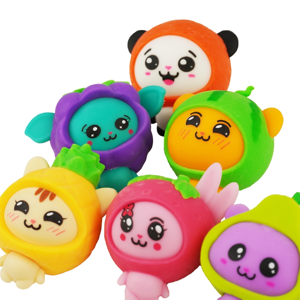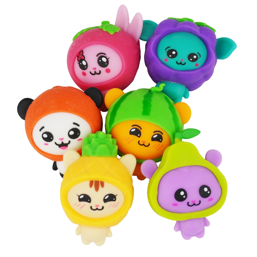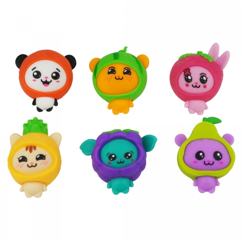 Ten gniotek to urocze zwierzątko w owocowej czapce... a kiedy go ściśniesz, twarz w zabawny sposób wyskoczy do przodu!