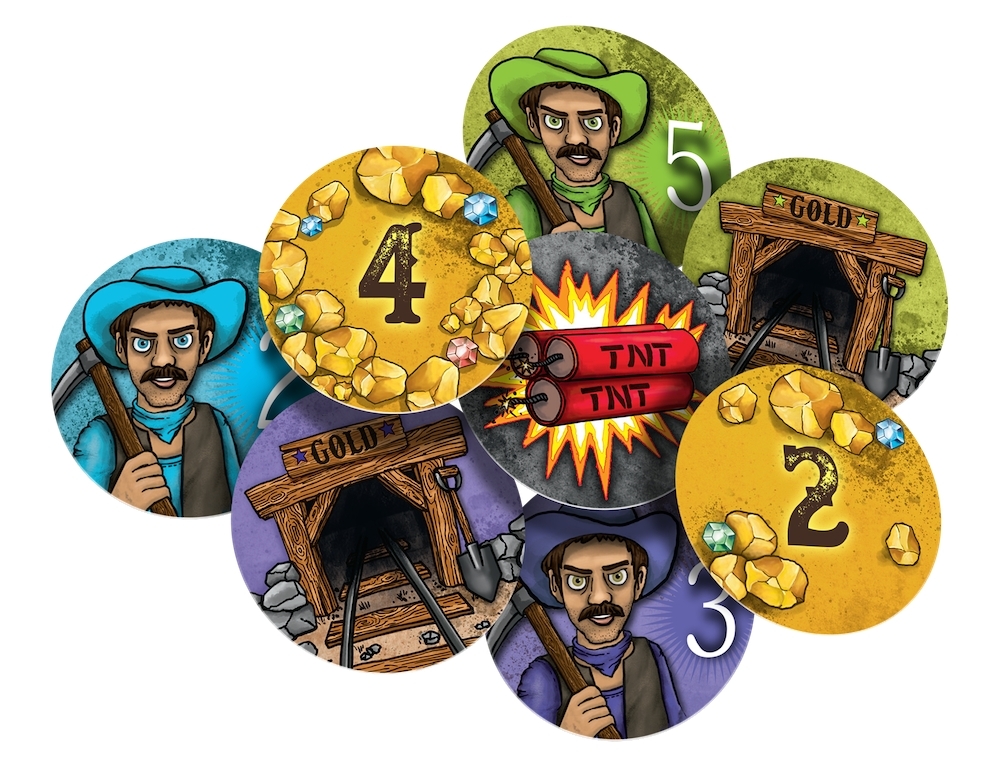 W grze Gold odwiedzamy kopalnię złota złożoną z zakrytych kart. W swojej turze każdy z uczestników odkrywa 2 wybrane karty, wśród których znajdziemy symbole poszczególnych poszukiwaczy, cenne bryłki oraz pułapki w postaci lasek dynamitu. Aby wygrać, musimy wykazać się nie tylko doskonałą pamięcią (aby w odpowiedniej chwili wrócić do dostępnych kart), ale też sprytem, by umiejętnie eliminować innych uczestników.