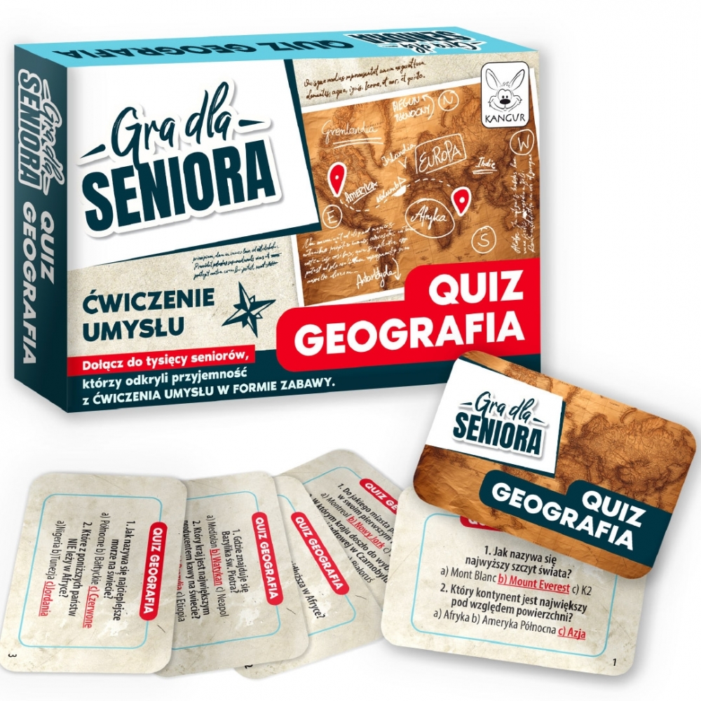 Geografia to przyjazna i wciągająca edukacyjna gra stworzona z myślą o seniorach, którzy lubią poszerzać swoją wiedzę o świecie oraz utrzymać umysł w dobrej kondycji. Gra ma formę quizu z pytaniami dotyczącymi geografii Polski i świata, np. o stolice państw, rzeki, góry, kraje, kontynenty czy znane miejsca. Zasady są proste, a rozgrywka spokojna i bez pośpiechu – dzięki temu każdy może grać we własnym tempie. Pytania mają różny poziom trudności, ale zawsze są jasno sformułowane i czytelnie prezentowane. Gra może być świetną zabawą zarówno w pojedynkę jak i w gronie znajomych lub rodziny.