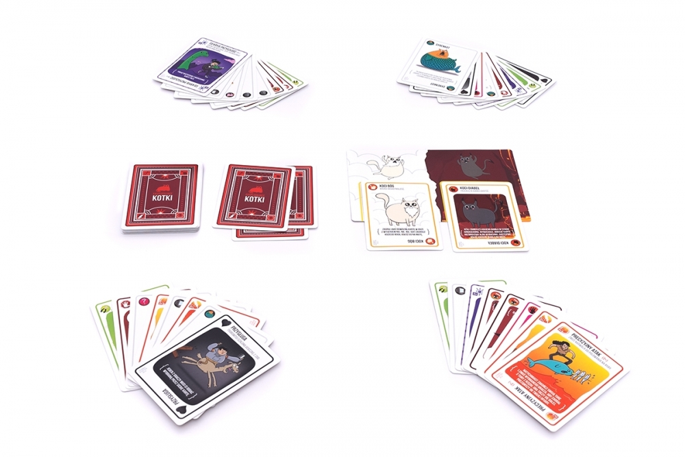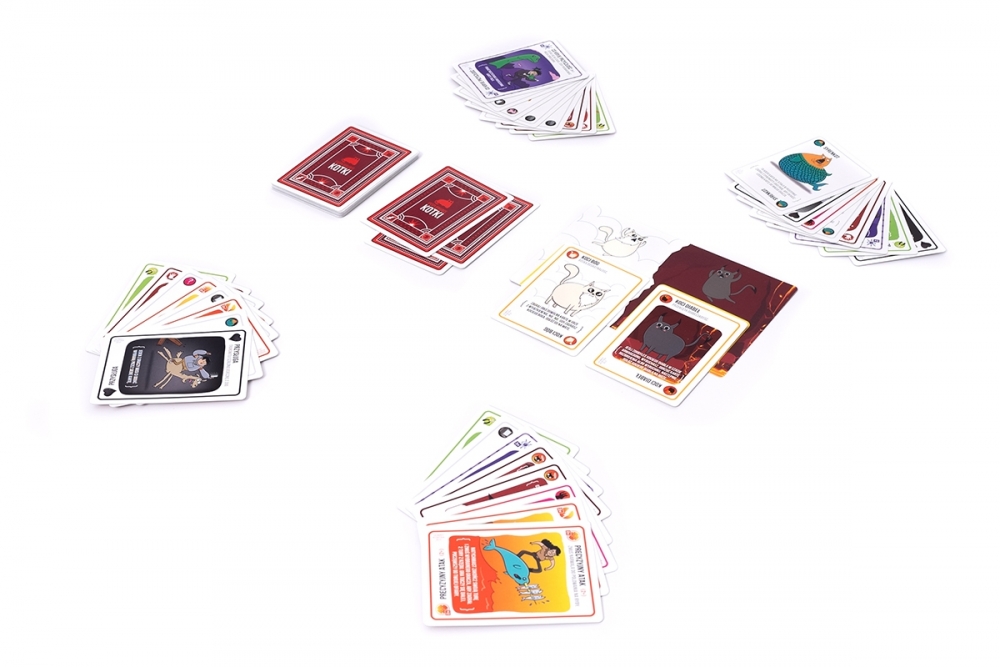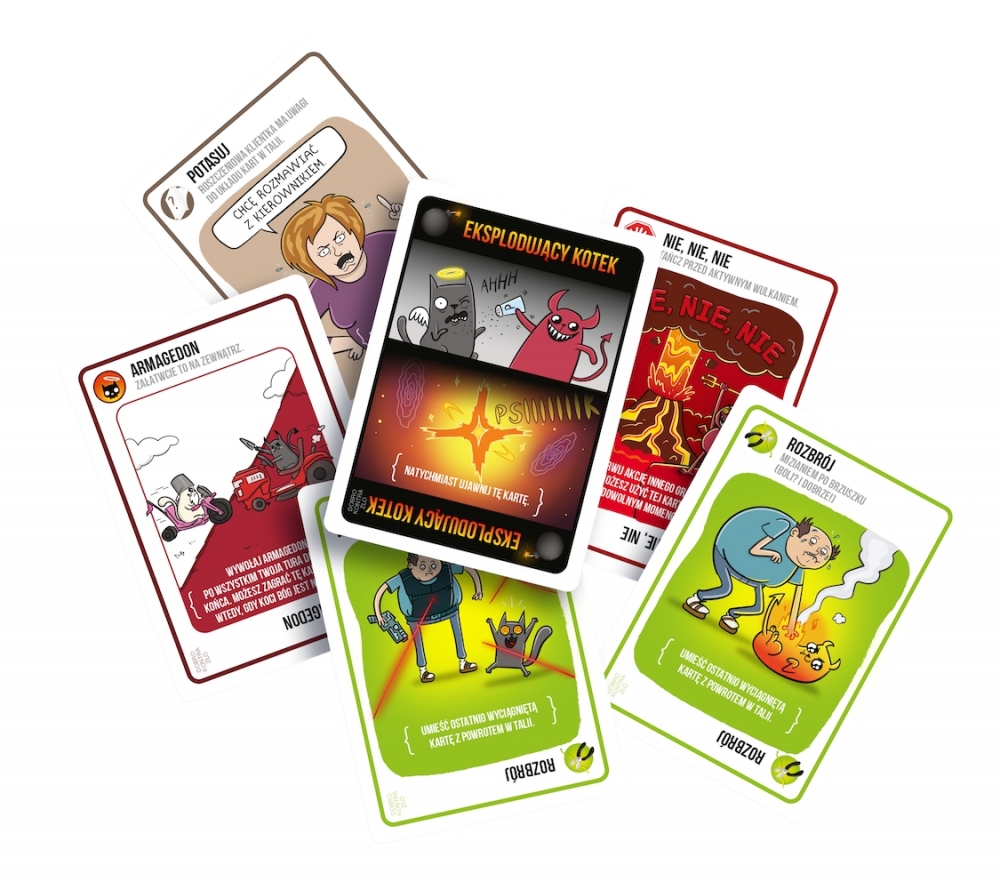 Eksplodujące Kotki to napędzana kociakami, całkowicie bezpieczna odmiana rosyjskiej ruletki. Podczas rozgrywek gracze co turę dobierają po jednej karcie, aż do momentu, gdy ktoś wyciągnie eksplodującego kotka – taki nieszczęśnik wybucha i ginie, a tym samym kończy grę. Na szczęście w talii są też karty, dzięki którym możemy odwlekać nieuniknione (a raczej przerzucić je prosto na przeciwników). Aby wygrać, musimy mądrze zarządzać kartami, które uda nam się zdobyć.