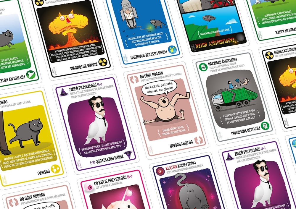 To niezwykle popularna w kraju i za granicą gra imprezowa pełna negatywnej interakcji! Uczestnicy kolejno dobierają karty, starając się jednocześnie uniknąć spotkania z eksplodującym kotkiem, który powoduje automatyczną przegraną! W tym celu będziemy zagrywali rozmaite karty odwlekacjące nieuniknione, przenoszące zagrożenie na przeciwników lub chroniące nas przez zgubnym wpływem tykającej bomby.