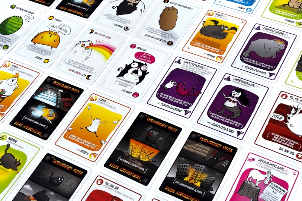 Eksplodujące Kotki to napędzana kociakami, całkowicie bezpieczna odmiana rosyjskiej ruletki. Podczas rozgrywek gracze co turę dobierają po jednej karcie, aż do momentu, gdy ktoś wyciągnie eksplodującego kotka - wówczas nieszczęśnik wybucha i ginie, a tym samym kończy grę. Na szczęście w talii są też karty, dzięki którym możemy odwlekać nieuniknione lub rozbrajać miauczącą bombę laserowym wskaźnikiem, mizianiem po brzuszku albo kanapką z kocimiętką. Aby wygrać, musimy mądrze zarządzać kartami, które uda nam się zdobyć.
