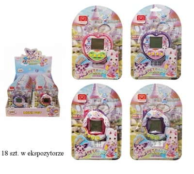 Zabawka w formie elektronicznego zwierzątka z wyświetlaczem i przyciskami do obsługi. Umożliwia interaktywną zabawę polegającą na opiece nad wirtualnym pupilem. Dostępne różne warianty kolorystyczne – kolor wybierany losowo. Cena dotyczy jednej sztuki. Produkt działa na baterie typu AG13. Baterie znajdują się w zabawce. Zabawka przeznaczona dla dzieci od lat 6. Produkt zapakowany w kartonową podstawkę z przezroczystym kloszem. Podane wymiary są wymiarami produktu w opakowaniu.