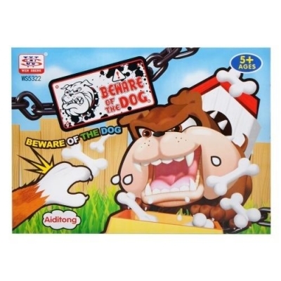 Pies spokojnie sobie śpi, to jest dobry moment żeby podkraść jego ulubione przysmaki. Użyj szczypiec i zdobądź jak najwięcej jego zabawek z miski. Ale uważaj, nie masz za dużo czasu, ten pies nie śpi nigdy długo, a jak się przebudzi to atakuje i broni swojej miski! Gra polega na wyciągnięciu z miski śpiącego psa jak najwięcej "fantów", trzeba to zrobić jak najszybciej, bo jak pies sie zbudzi to atakuje gracza. Wygrywa ta osoba która nazbiera najwięcej rzeczy. Gra zawiera; psa wraz z miską, karty z ilością kości oraz wskazanym kolorem, kolorowe małe kości, szczypce. Całość wykonana z plastiku oraz papieru. Przeznaczona dla dzieci od lat: 5+. Wymaga zasilania bateriami 3 x AA/LR6-nie załączono do zestawu