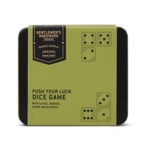 Klasyczna gra w kości 'Push your Luck" wydana przez Gentlemen's Hardware w wyróżniającej się estetyce.