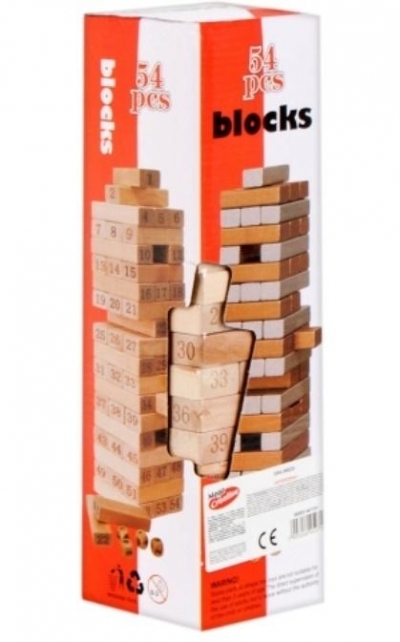 Wyciągaj drewniane klocki z wieży tak, aby się nie zawaliła.