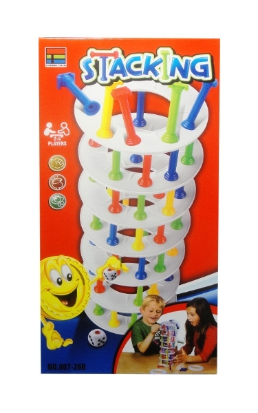 Gra zręcznościowa wieża. Usuwaj ostrożnie bloki jeden po drugim tak aby nie przewrócić konstrukcji. Jeśli to zrobisz to przegrasz. W zestawie 30 filarów, 7 dysków i kostka.