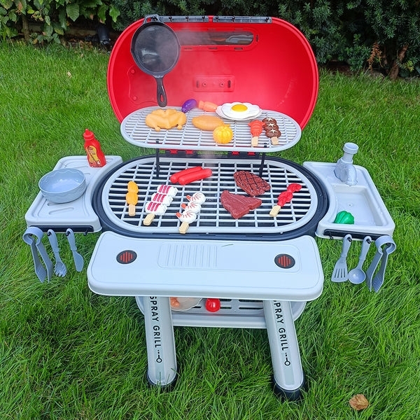 Grill ogrodowy dla dzieci oferuje efekty świetlne i parę wodną, dzięki czemu odgrywanie ról przypomina prawdziwe spotkania przy ruszcie. Duży korpus, otwierana pokrywa i bogaty zestaw akcesoriów zapewniają długie godziny twórczej aktywności – w domu i na tarasie.