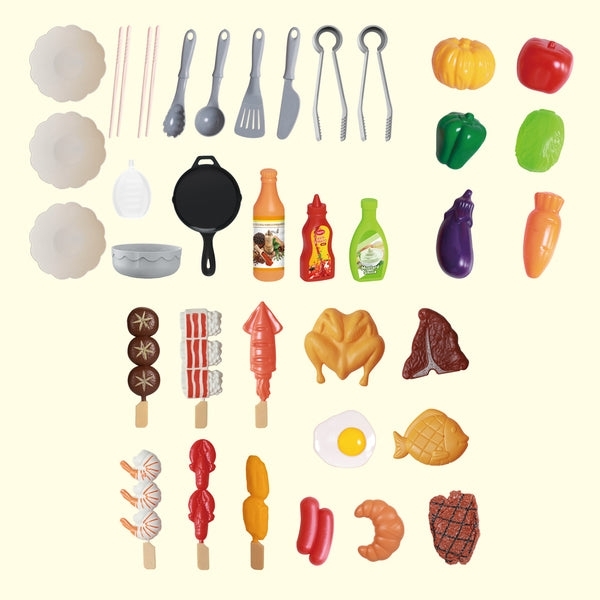 - Oferuje aż 68 elementów, w tym warzywa, „mięsa”, sosy i naczynia.