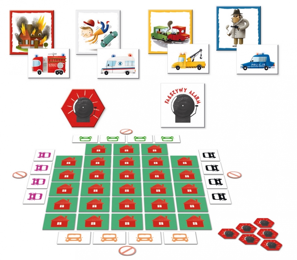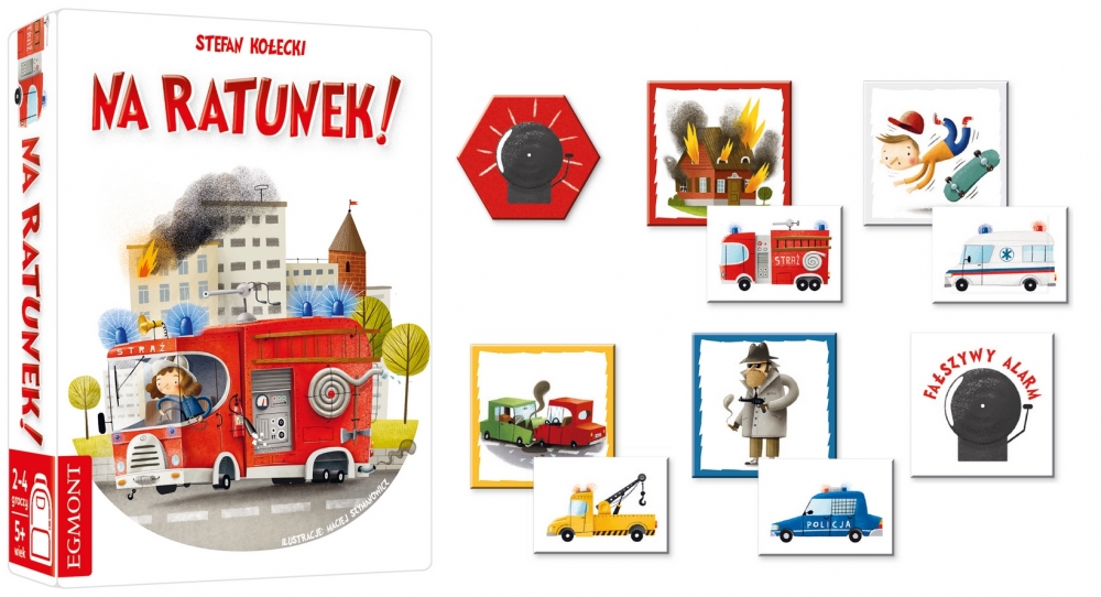 Na ratunek! to ciekawa gra memory dla młodszych graczy. Pod względem mechanicznym nowością jest wyszukiwanie par, w których 1 z elementów jest łatwy do zlokalizowania (czyli samochód), choć również konieczny do zapamiętania.