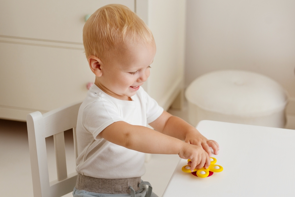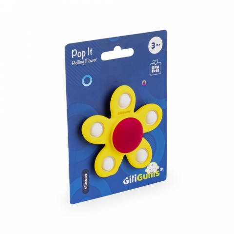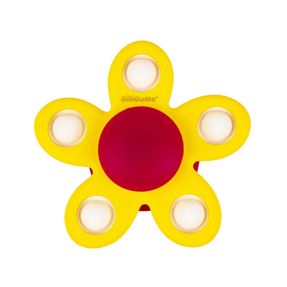 Zakręć kwiatkiem i odkryj radość z sensorycznej zabawy! Płatki zdobią wystające kuleczki pop it, a zadaniem malucha jest przepchnąć je na drugą stronę, a następnie z powrotem, na wierzch kwiatka. To zajmująca i odprężająca rozrywka, która pomaga ćwiczyć sprawność paluszków. Kwiatek wyposażony został w praktyczną przyssawkę, dzięki czemu możesz przyczepić go do czystej, gładkiej powierzchni, aby nie przesuwał się podczas zabawy. Dodatkową funkcją tej słonecznie pozytywnej zabawki jest możliwość kręcenia kwiatkiem i obserwowania jak wiruje dookoła. Radość w najczystszej postaci!