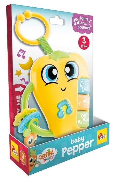 Najnowsza propozycja z linii Carotina Baby to Carotina i jej dwójka przyjaciół Papriko i Van Żan w formie elektronicznych zabawek! Zabawki posiadają możliwość odtwarzania uroczych melodyjek i efektów świetlnych po naciśnięciu na odpowiedni przycisk. Każde z warzyw posiada również miękkie zawieszki.