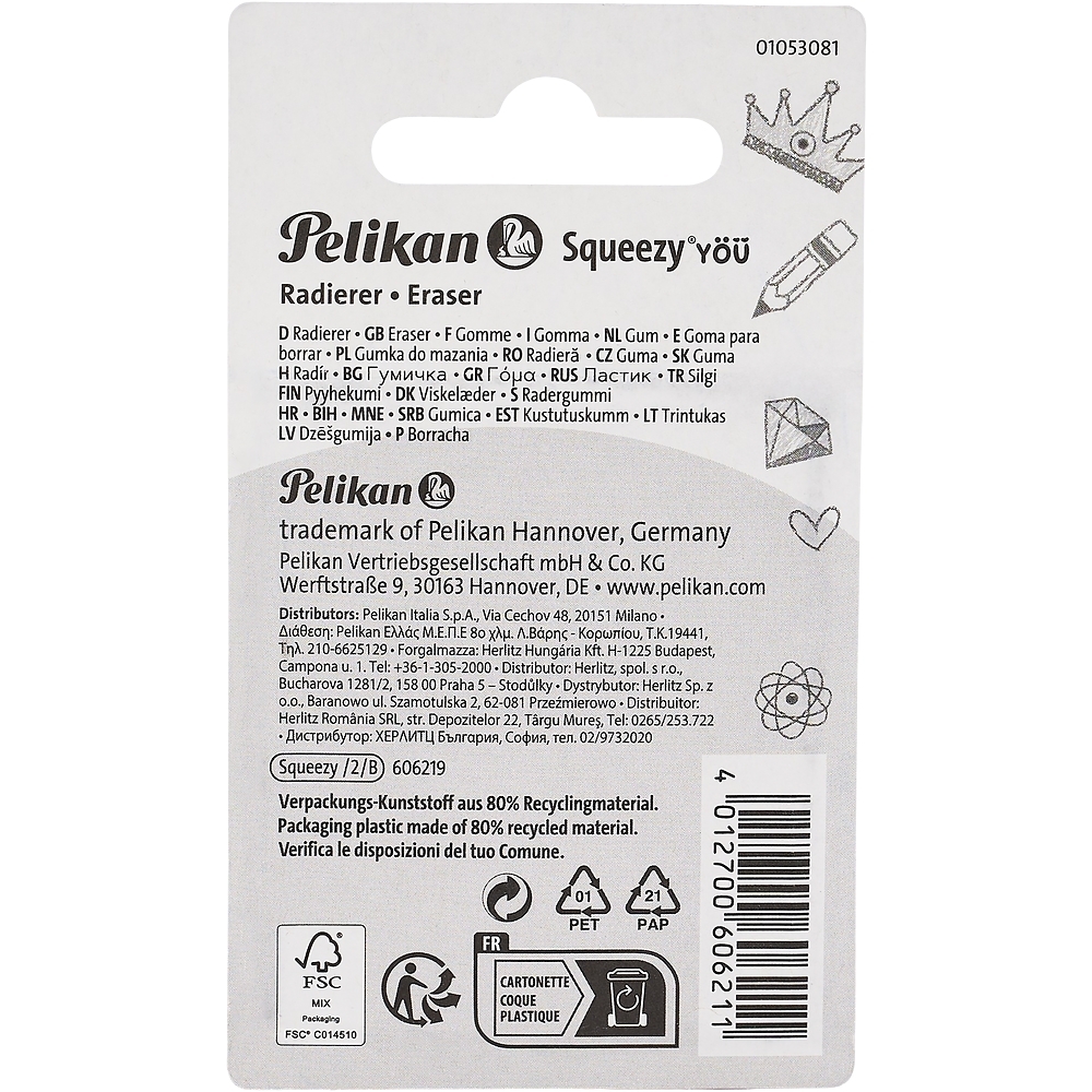 Każda gumka ozdobiona jest zabawnym nadrukiem i zabezpieczona papierową owijką, która chroni ją przed zabrudzeniem i ułatwia trzymanie. Miękkie tworzywo sztuczne, z którego są wykonane, jest delikatne dla papieru, a jednocześnie skutecznie usuwa grafit bez rozmazywania i uszkadzania powierzchni. Dzięki zaokrąglonemu kształtowi, gumki doskonale leżą w dłoni, a ich kompaktowy rozmiar (52 × 28 × 11 mm) sprawia, że mieszczą się w każdym piórniku. Squeezy® to również bezpieczny wybór dla alergików – nie zawierają lateksu ani PVC.