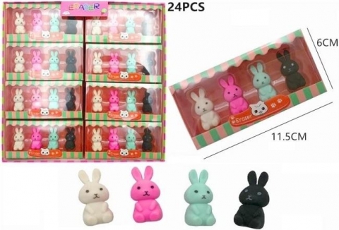 Odkryj radość z mazania z naszymi fantastycznymi gumkami w kształcie uroczych króliczków! Ten produkt to zbiorcze opakowanie zawierające 24 indywidualne zestawy, co sprawia, że jest to doskonała propozycja dla sklepów, szkół czy na prezenty. W każdym zestawie znajdziesz cztery gumki w kształcie króliczków, każda w innym, pastelowym kolorze. Gumki wykonane są z wysokiej jakości materiałów, zapewniając skuteczne i czyste usuwanie ołówkowych śladów. Dzięki swojemu unikalnemu designowi, z pewnością podbiją serca zarówno dzieci, jak i dorosłych. Idealne do piórników, na biurka, jako nagrody lub drobne upominki. Wymiary opakowania z zestawem to około 11.5 cm x 6 cm. Cena dotyczy jednego zestawu.